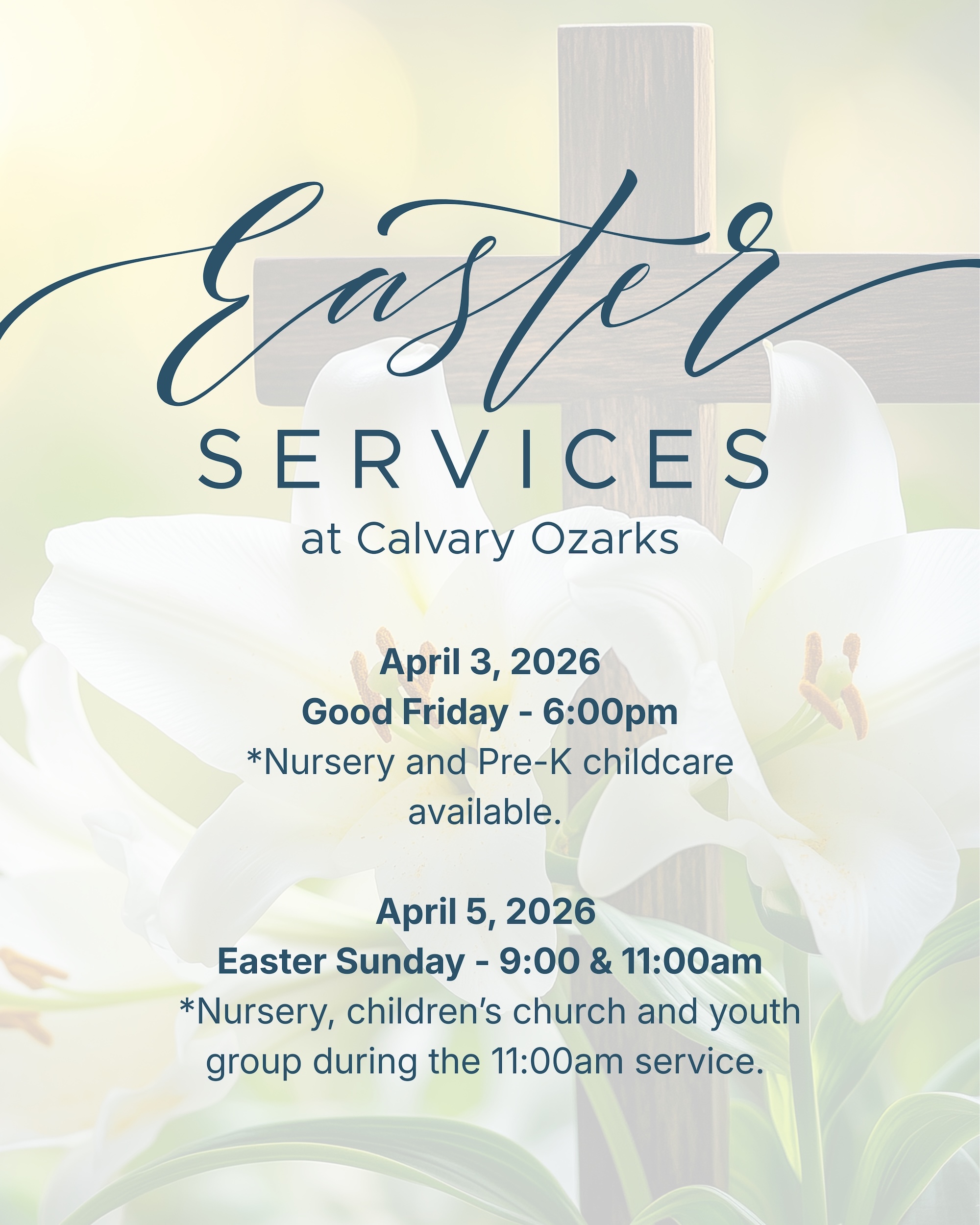 Our Good Friday service will be on Friday, April 3rd at 6:00pm. We will have worship, a short message and a special time of prayer. Nursery and Pre-K childcare will be available.